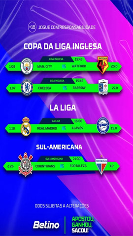As apostas esportivas no Betino mobile cobrem os esportes favoritos dos brasileiros, com odds atualizadas em tempo real: